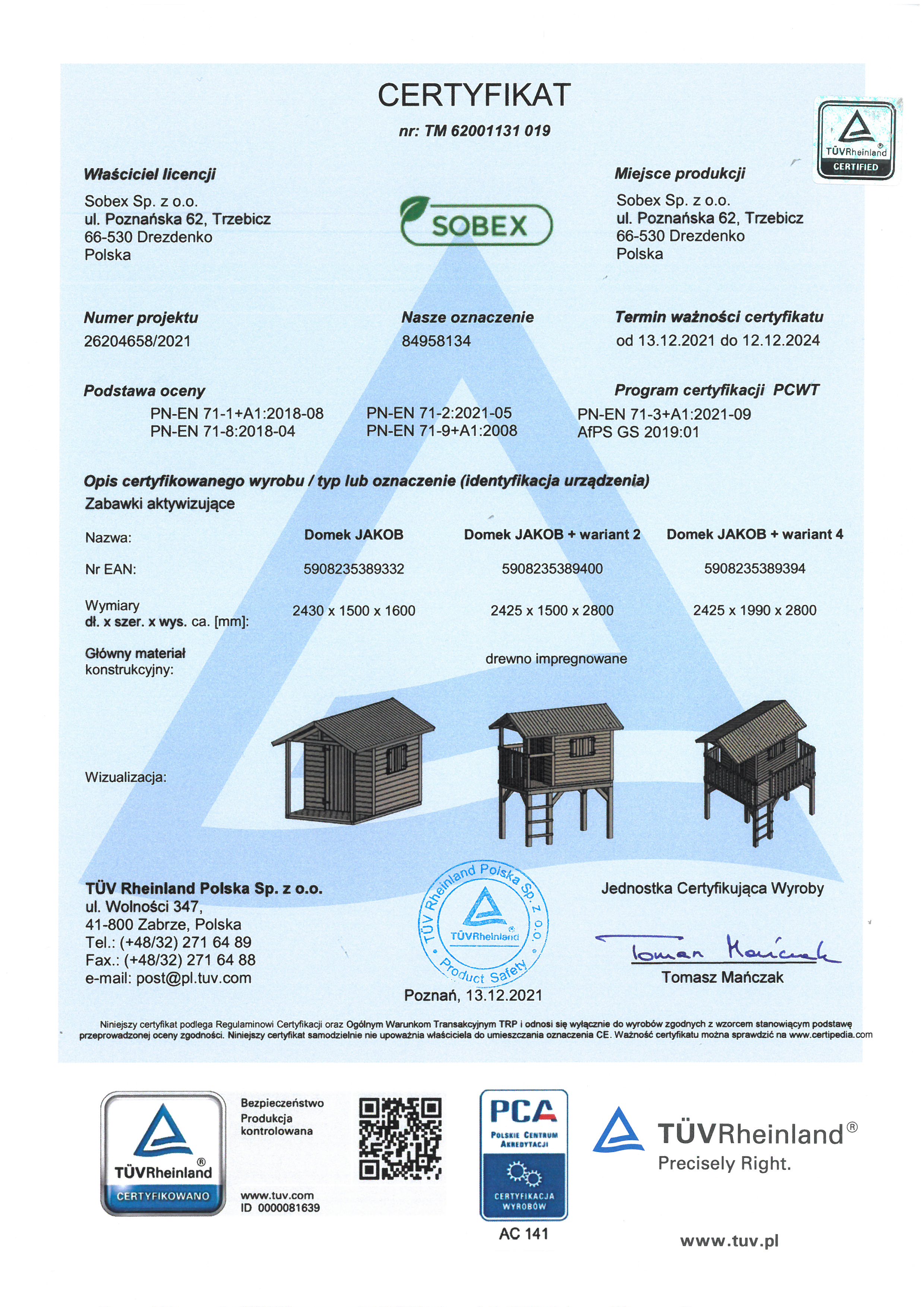 CERTYFIKAT TUV HUŚTAWKI JACEK